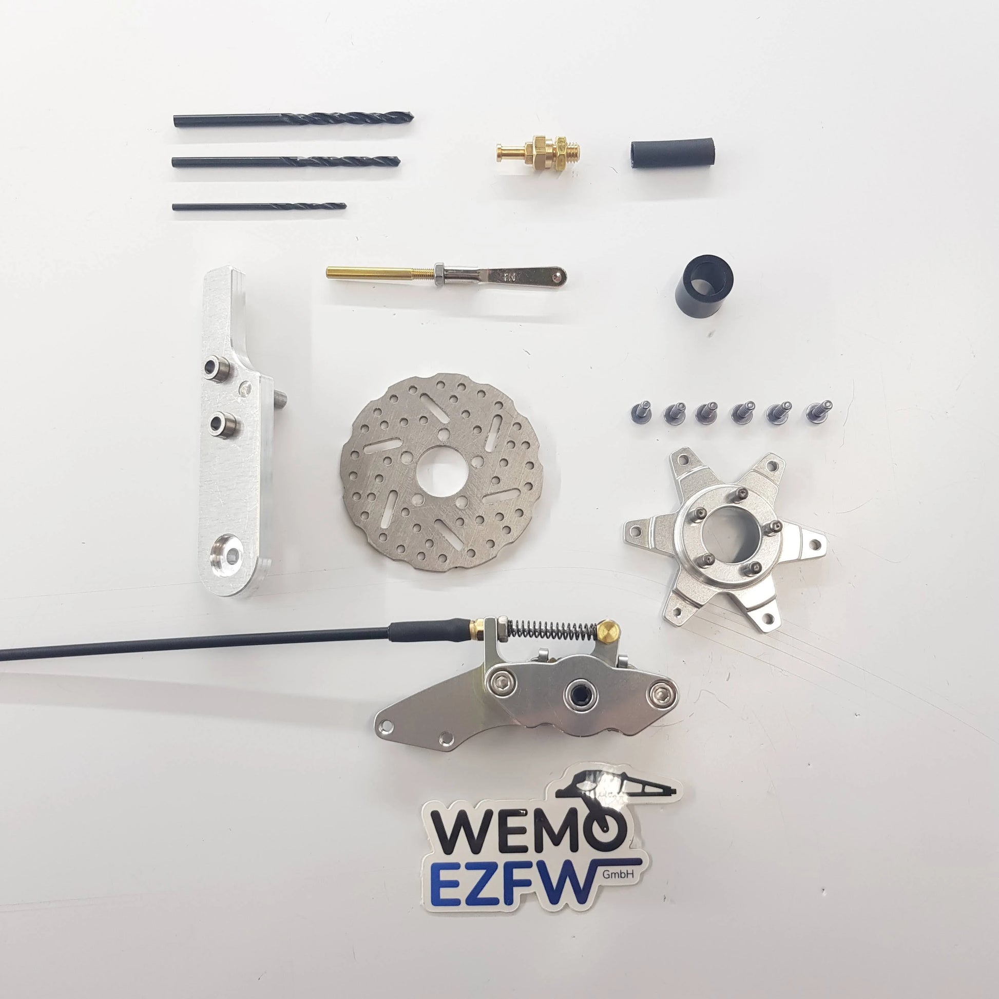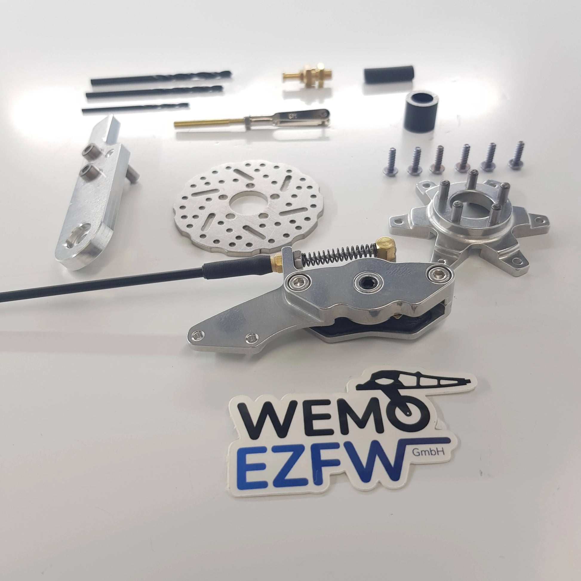 Unsere Scheibenbremse für WEMO-Fahrwerke ist als Nachrüstsatz konzipiert. Sie als Kunde können ein bereits vorhandenes Fahrwerk von WEMO-EZFW mit der Bremse ausrüsten oder sich bei einem Kauf eines neuen Fahrwerkes die Bremse ab Werk von uns montieren lassen.